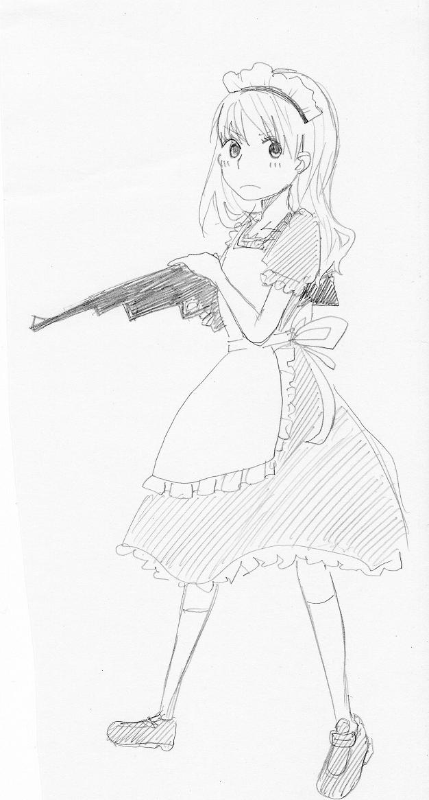 手抜きとかじゃありませんよ、メイド服もマシンガンもわからなかっただけです