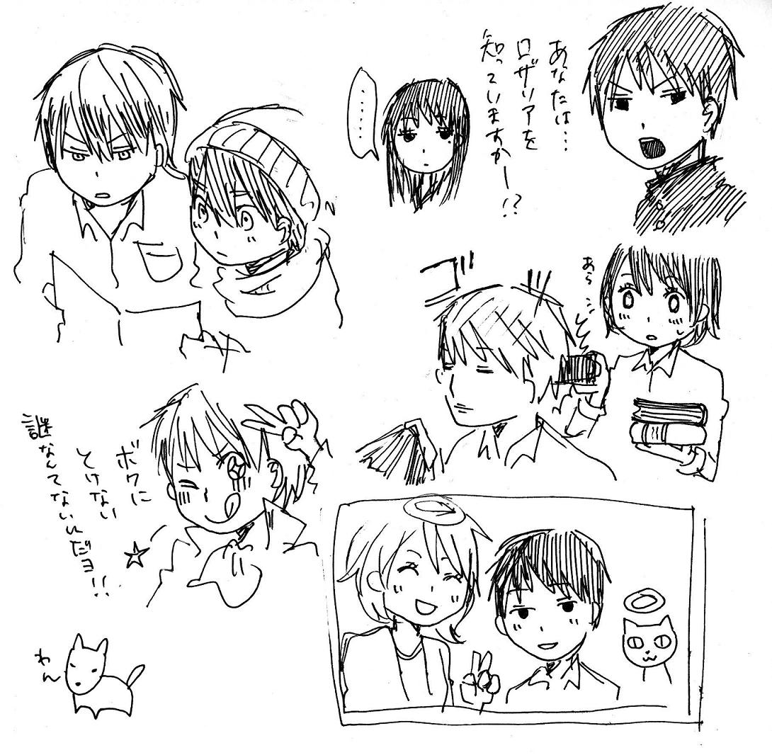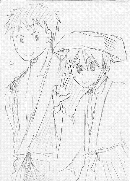 もともと落書きだったんですが、なんだか右上の人と左下の人がとても気に入ったので載せました。